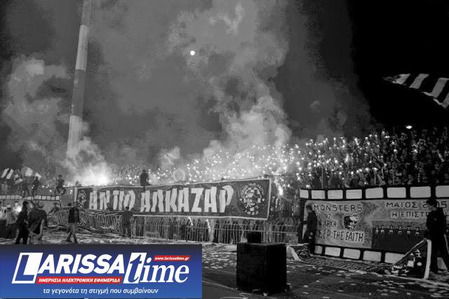Πριν από την έναρξη του ματς μάλιστα, πραγματοποίησαν πορεία προς το γήπεδο, κρατώντας ένα πανό που έγραφε «ΑΝΤΙΟ ΑΛΚΑΖΑΡ» και το οποίο στη συνέχεια τοποθέτησαν στις εξέδρες του ιστορικού γηπέδου. “46 χρόνια, ένα στάδιο, μία ομάδα, μία πόλη, μία ιστορία, ένα πρωτάθλημα, πολλές ευρωπαϊκές διοργανώσεις, δύο κύπελλα”, έτσι ξεκινούσε το πρώτο βίντεο που έπαιξε λίγα λεπτά πριν από την έναρξη της αναμέτρησης και είχε ως στόχο να “τρέξει” όλη τη “βυσσινί” ιστορία που είναι συνυφασμένη με το στάδιο Αλκαζάρ. Παράλληλα, λίγο πριν το τέλος της αναμέτρησης, οι φανατικοί της ΑΕΛ άναψαν κεράκια, με τα οποία ουσιαστικά αποχαιρέτησαν το αγαπημένο τους Αλκαζάρ. Παρόλα αυτά η ομάδα της ΑΕΛ επέστρεψε και πάλι στο στάδιο Αλκαζάρ για να αγωνιστεί στο πρωτάθλημα της Γ’ Εθνικής την σεζόν 2013-2014, την σεζόν 2014-2015 στο πρωτάθλημα της Football League η ΑΕΛ είχε ως έδρα το Στάδιο Αλκαζάρ, ενώ την σεζόν 2020-2021 αγωνίστηκε στο στάδιο Αλκαζάρ για το πρωτάθλημα της Superleague 1, κάτι το οποίο έγινε και τη διετία 2021-2023 στο πρωτάθλημα της Superleague 2.