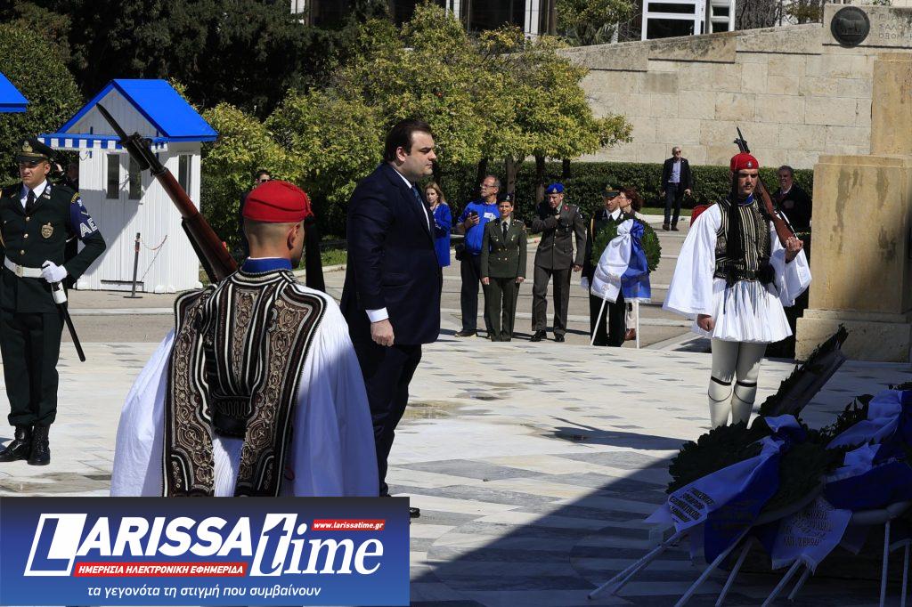 Ο Κυριάκος Πιερρακάκης καταθέτει στεφάνι στο μνημείο του Αγνώστου Στρατιώτη