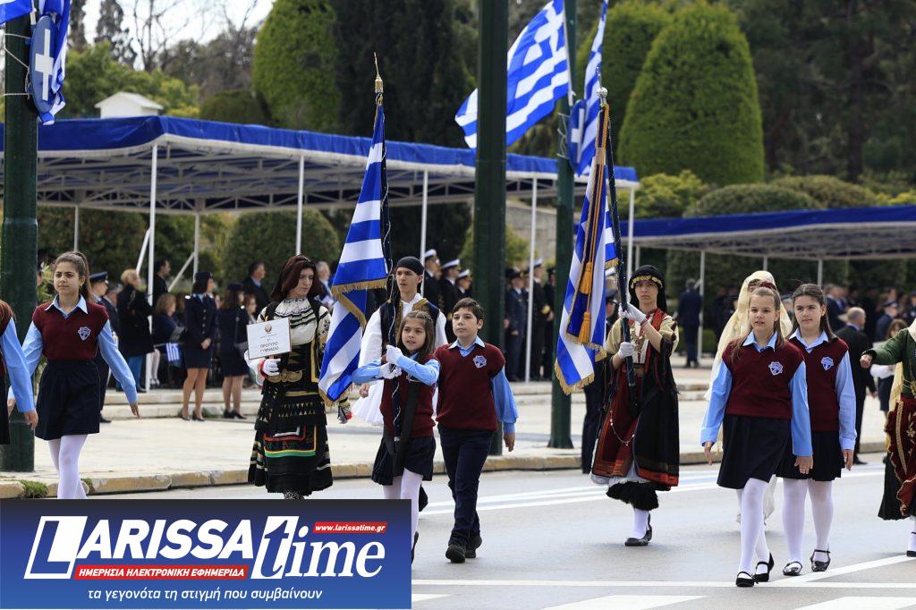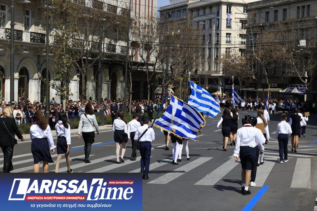 Πλήθος κόσμου παρακολούθησε την μαθητική παρέλαση που πραγματοποιήθηκε το μεσημέρι της Κυριακής μπροστά από το Μνημείο του Αγνώστου Στρατιώτη, ενόψει της 25ης Μαρτίου. Με βάση το πρόγραμμα της παρέλασης, συμμετείχαν 1.500 μαθητές από 230 σχολεία (229 από την Αττική και ένα από τα Καλάβρυτα).