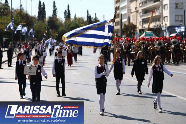 Οι πολίτες συγκεντρώθηκαν στους δρόμους του κέντρου της Αθήνας, για να παρακολουθήσουν τη μαθητική παρέλαση για την επέτειο της 28ης Οκτωβρίου.