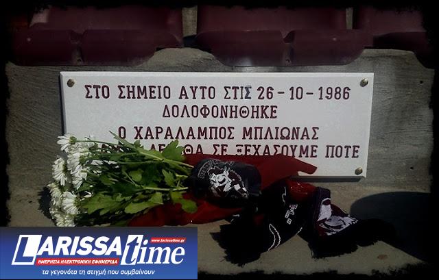 Μαύρη επέτειος η σημερινή ημέρα για τη Λάρισα, καθώς συμπληρώνονται 38 χρόνια από τον άδικο χαμό του Χαράλαμπου Μπλιώνα, ενός φιλάθλου της, που «έφυγε» τόσο άδικα από τη ζωή.