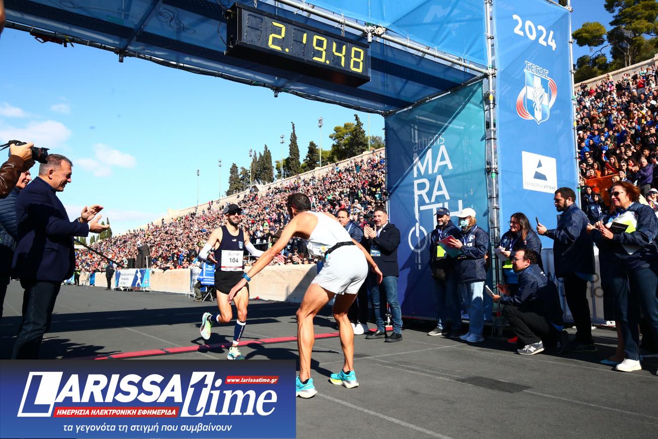 Δεύτερος τερμάτισε ο Παναγιώτης Καραΐσκος σε 2:19:50. Μοναδική η στιγμή όταν ο Χαράλαμπος Πιτσώλης τον περιμένει να πέσει στην αγκαλιά του.
