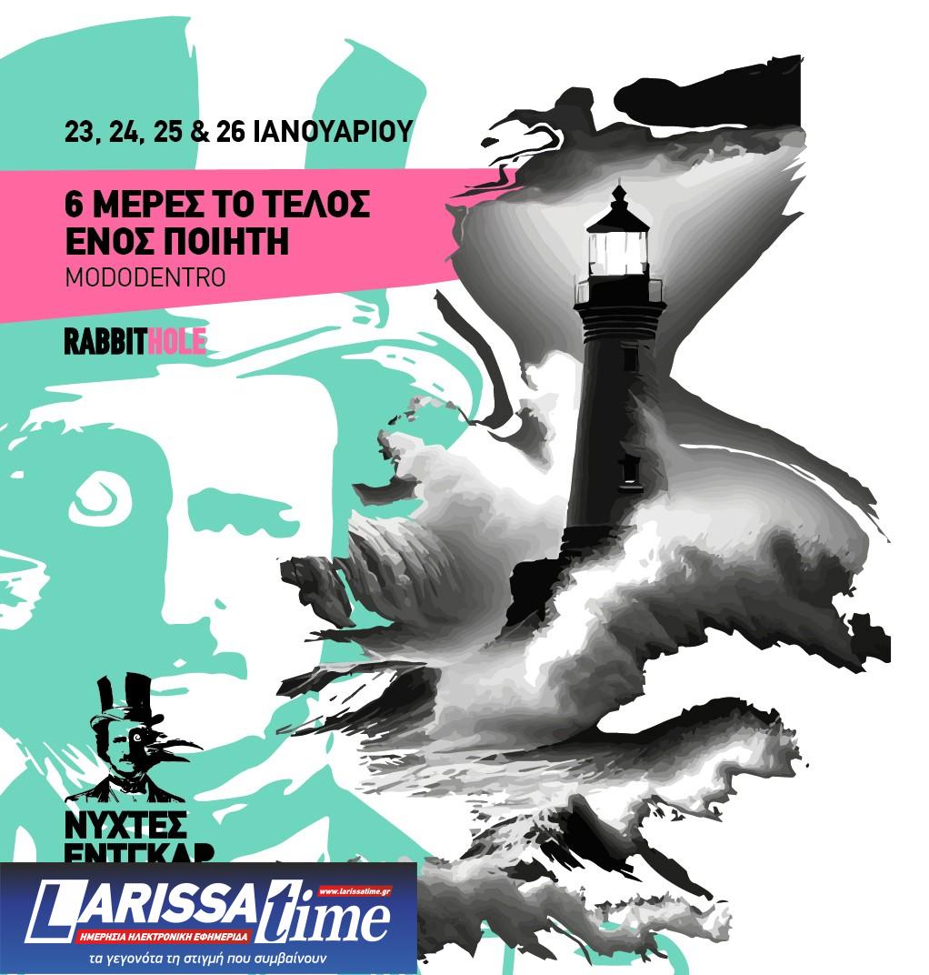 Πρεμιέρα για τη θεατρική παράσταση “6 μέρες: Το τέλος ενός ποιητή” στις 23 Ιανουαρίου στο Rabbithole (Γερμανικού 20, Μεταξουργείο) σε σκηνοθεσία Γιώργου Τζαβάρα. 6 ηθοποιοί. 6 ποιήματα. 6 ιστορίες. 6 μέρες· το τέλος ενός ποιητή.