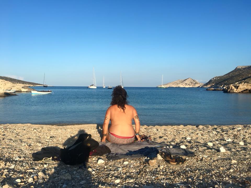 Φέτος, από τον Οκτώβρη, έκανα πεζοπορία, μαθήματα κεραμικής, βουτιές στη θάλασσα, έγραψα τραγούδια με φίλους, έπαιξα επιτραπέζια, διάβασα πολύ και είδα άπειρες ταινίες. Όταν είναι εδώ 21:30, είναι σαν είναι 2:30 τη νύχτα στην Αθήνα. Μου αρέσει αυτή η ηρεμία, αλλά και η τρικυμία της θάλασσας. Οι εικόνες είναι μαγικές και τις μοιράζομαι με τα τραγούδια που γράφω. Μπορεί να μου λείπει η οικογένειά μου, οι φίλοι μου και το βαφτιστήρι μου, αλλά εδώ είμαι περισσότερο ο εαυτός μου. Αισθάνομαι τυχερή που ζω στην Αμοργό και θα το ξανάκανα χίλιες φορές»