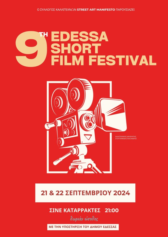 Η καρδιά της κινηματογραφικής δημιουργίας χτυπά δυνατά στην πόλη της Έδεσσας, όπου το 9ο Φεστιβάλ Ταινιών Μικρού Μήκους Έδεσσας ετοιμάζεται να συναρπάσει το κοινό το Σάββατο 21 και την Κυριακή 22 Σεπτεμβρίου 2024.
