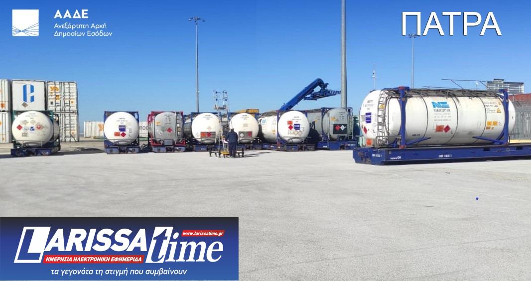 Στον εντοπισμό και τη δέσμευση σημαντικών ποσοτήτων (252.000 κιλά) επικίνδυνων διαλυτών, που χρησιμοποιούνται για τη νόθευση καυσίμων, προχώρησαν Τελωνειακοί Ελεγκτές της ΑΑΔΕ σε δύο σημεία, σε Πάτρα και Ευζώνους.