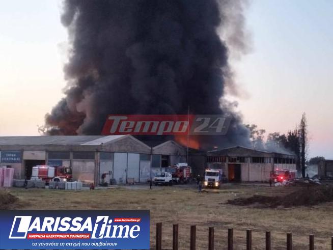 Στιγμιότυπο από το εργοστάσιο την ώρα που η φωτιά βρισκόταν σε εξέλιξη (Πηγή: Tempo24)