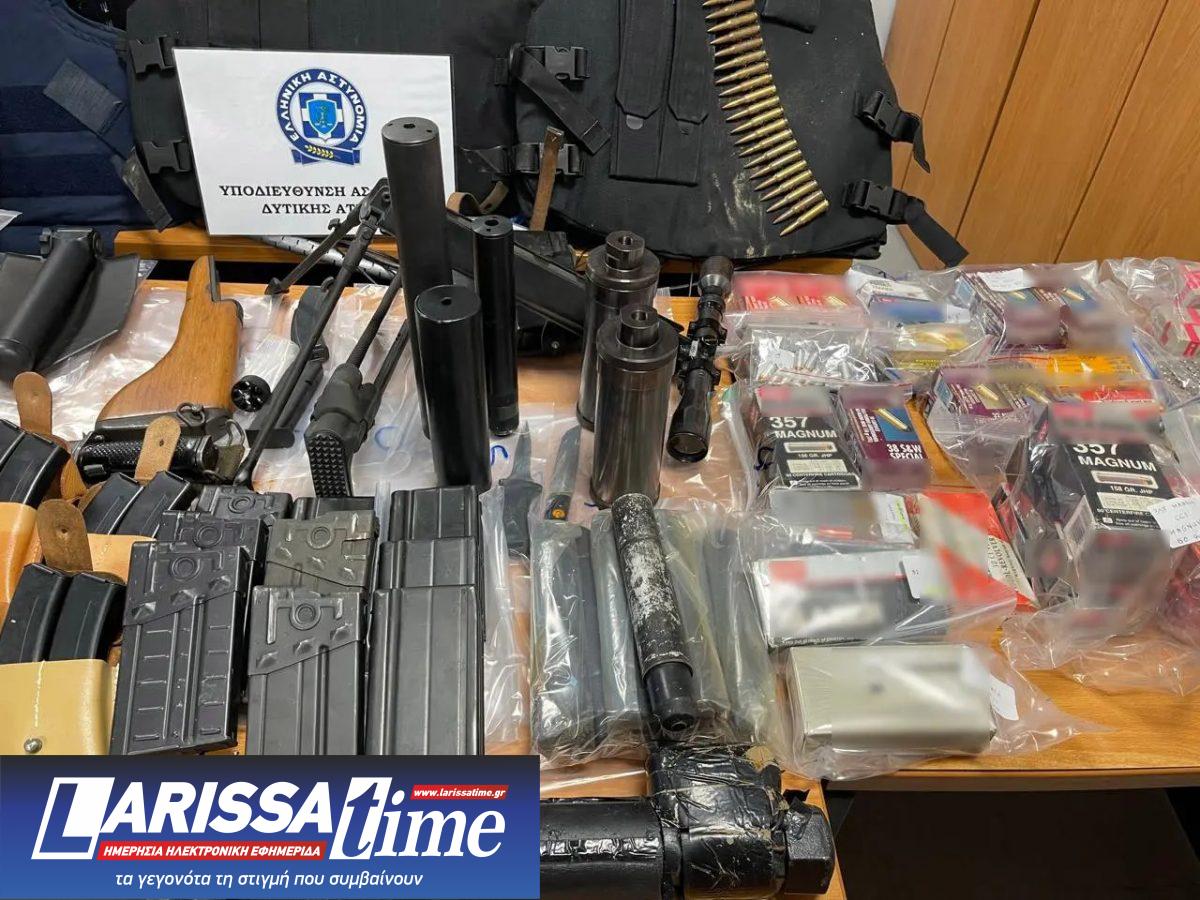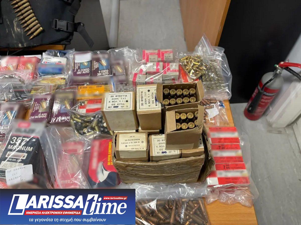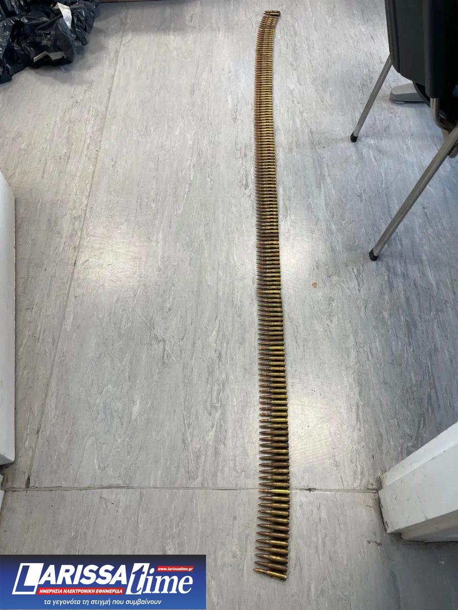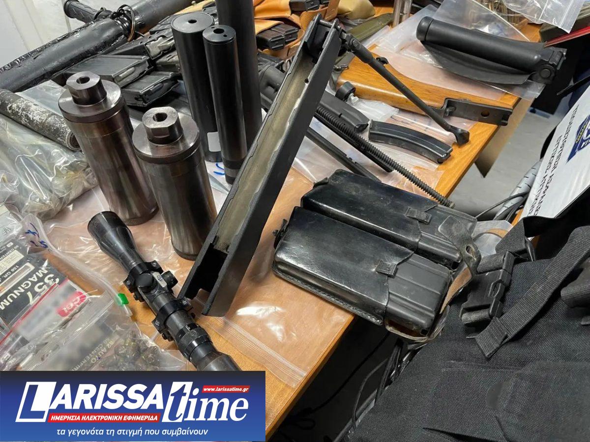 Από την έρευνα στο σπίτι, μεταξύ άλλων, βρέθηκαν και κατασχέθηκαν 5 αυτοσχέδιοι εκρηκτικοί μηχανισμοί, 5 αυτοσχέδιοι μηχανισμοί χρονοκαθυστέρησης, 5 χειροβομβίδες, 4.459 φυσίγγια, αυτοσχέδιο πυροβόλο όπλο, 25 φωτοβολίδες, 70 γεμιστήρες, 6 σιγαστήρες, 8 θήκες γεμιστήρων, διόπτρα, 3 αλεξίσφαιρα γιλέκα, ξιφολόγχη, εξαρτήματα όπλων, 2 μαχαίρια και μεταλλικός τρίφτης.