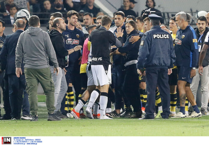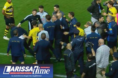 Το φινάλε του ντέρμπι «δικεφάλων» μεταξύ του ΠΑΟΚ και της ΑΕΚ βρήκε τους Θεσσαλονικείς νικητές με 3-2 έπειτα από ανατροπή στην ανατροπή, όμως η ένταση στο φινάλε μεταφέρθηκε κι ύστερα από το τέλος του αγώνα.