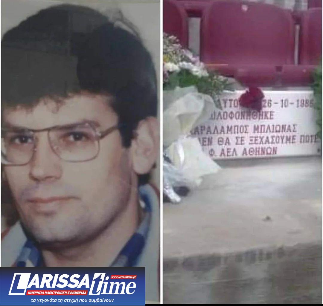 Μέσω της επίσημης σελίδας του, ο σύνδεσμος φιλάθλων της ΑΕΛ, “ATHENS CLUB” ανέβασαν μία εικόνα με αφορμή τη συμπλήρωση 38 χρόνων από τη δολοφονία του Χαράλαμπου Μπλιώνα με το μήνυμα: «ΔΕΝ ΞΕΧΝΩ».