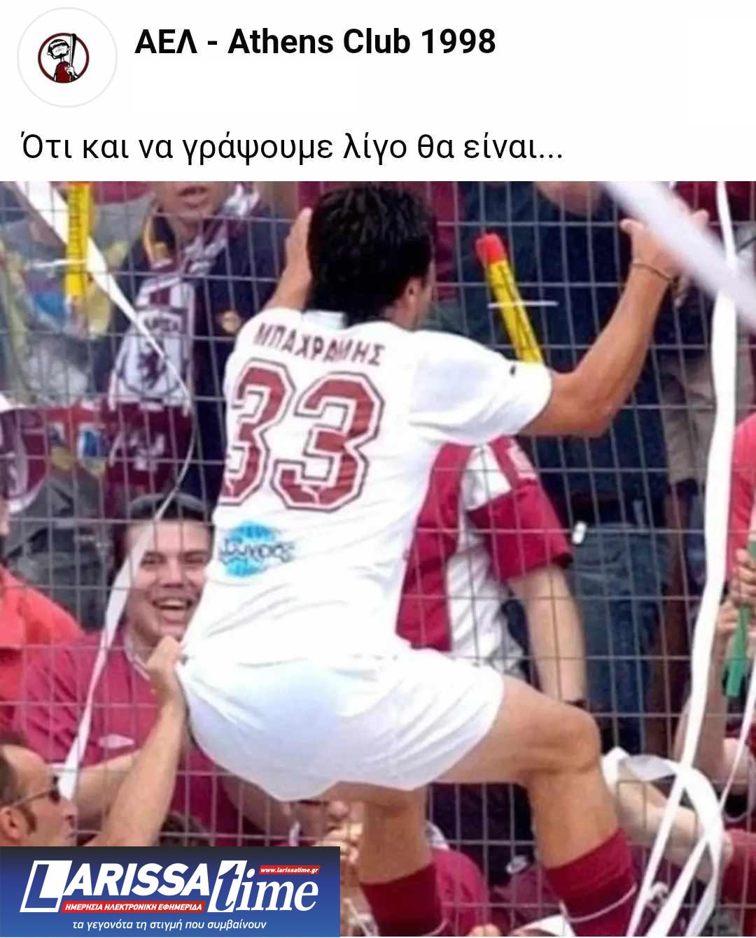 Μέσω μιας εικόνας και του μηνύματος “Ότι και να γράψουμε λίγο θα είναι…” που ανέβασε στην επίσημη σελίδα του σε site κοινωνικής δικτύωσης, ο σύνδεσμος φιλάθλων της ΑΕΛ, «Athens Club» υπενθύμισε σε όλους την συμπλήρωση 14 χρόνων από το θάνατο του Παναγιώτη Μπαχράμη.