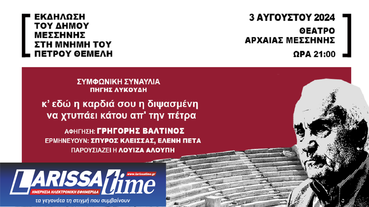 Ο Δήμος Μεσσήνης διοργανώνει στη μνήμη του Πέτρου Θέμελη, του ανθρώπου που με γνώση, όραμα και μεράκι «ανέστησε» την Αρχαία Μεσσήνη, ένα κορυφαίο πολιτιστικό γεγονός, στο αναστηλωμένο Αρχαίο θέατρο. Πραγματοποιεί συμφωνική συναυλία με έργα της βραβευμένης διεθνώς Ελληνίδας συνθέτιδος Πηγής Λυκούδη.