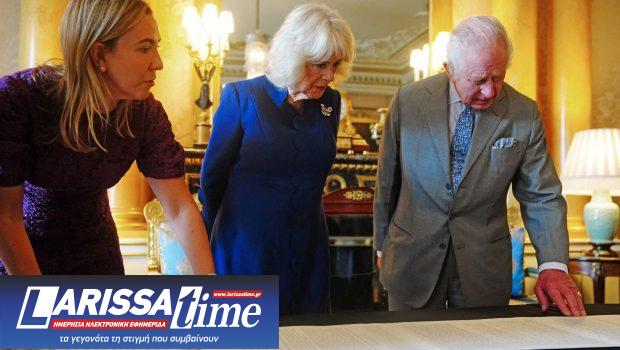 Για κάθε στέψη δημιουργούνται εδώ και αιώνες ρολά, αλλά αυτό είναι το πρώτο που τυπώθηκε σε χαρτί και όχι σε περγαμηνή από δέρματα ζώων, αντανακλώντας τις απόψεις του βασιλιά για την ευημερία των ζώων. Η υπάλληλος του Στέμματος στο Chancery, Αντόνια Ρομέο, ήταν αυτή που παρουσίασε το ιστορικό πλέον κείμενο στο βασιλικό ζεύγος. Μαζί με το πρωτότυπο έγγραφο, ο βασιλιάς και η βασίλισσα θα δουν μια ψηφιακή έκδοση που θα είναι διαθέσιμη.