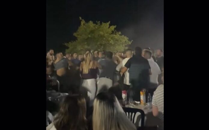 Όπως φαίνεται στο βίντεο που ανέβασε χρήστης του TikTok, κάποια στιγμή και ενώ παρευρισκόμενοι χόρευαν και διασκέδαζαν, ξέσπασε άγριος καβγάς και έπεσε ξύλο μεταξύ αρκετών ατόμων.