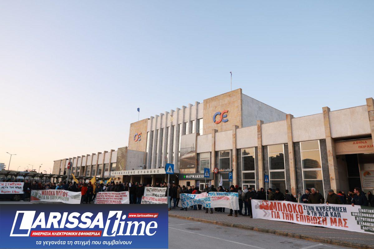 Την ίδια ώρα καθ΄οδόν αγρότες που ξεκίνησαν από τον κόμβο Μαλγάρων ενώθηκαν με τους συναδέλφους τους έξω από το κτίριο του ΟΣΕ. Πάνω από 70 τρακτέρ και περίπου 30 αγροτικά μηχανήματα με μαύρες σημαίες μπήκαν στην Εθνική Οδό και έφτασαν στον Σιδηροδρομικό Σταθμό για τη συγκέντρωση διαμαρτυρίας.