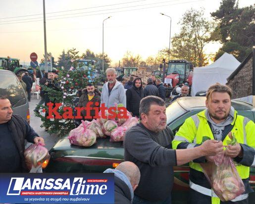 Σύμφωνα με το karfitsa.net, oι παραγωγοί των λαϊκών αγορών μοίρασαν ένα τόνο λαχανικών (πατάτες, μελιτζάνες, κουνουπίδια, ραπανάκια, καρότα) στους αγρότες και στους διερχόμενους οδηγούς του μπλόκου των Πράσινων Φαναριών.