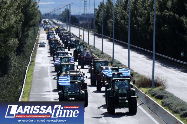 Το κομβόι από τρακτέρ και αγροτικά μηχανήματα ξεκίνησε οργανωμένα από το μπλόκο της Νίκαιας λίγο μετά τις 11 το πρωί και έφτασε στις σήραγγες των Τεμπών λίγο μετά τη 1 το μεσημέρι, κλείνοντας και τα δύο ρεύματα του αυτοκινητόδρομου.