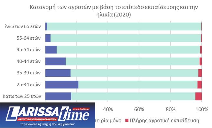 Με βάση την κατάρτισή τους, από τη μελέτη προκύπτει ότι η συντριπτική πλειοψηφία των Ελλήνων αγροτών (94%) δεν έχει τυπική εκπαίδευση και βασίζεται αποκλειστικά στην πρακτική εμπειρία.