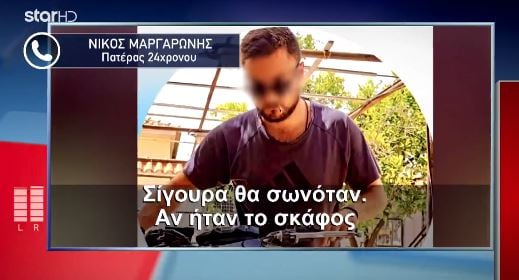 «Δεν είχαν οξυγόνο, του έκανα εγώ με το στόμα, καταλαβαίνετε; Αυτό είναι συγκλονιστικό. Και είχαν σε ένα κάθισμα, σε ένα παλιό ράντζο πάνω. Αν ήταν το σκάφος του λιμενικού θα έκανε σίγουρα λιγότερο και δεν θα χτυπιόταν το κεφάλι του πάνω στο ράντζο, που είχε και το σίδερο που κρατάει την τέντα. Ακατάλληλο τελείως. Γιατί το παιδί μου είναι 1,80 και τα πόδια του τα έχει μαζεμένα για να χωρέσει. Δεν είχε τίποτα» δήλωσε.
