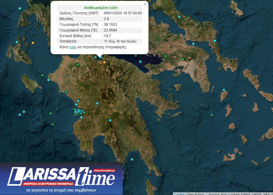 Νέος σεισμός σημειώθηκε λίγα λεπτά πριν τις από 10 το βράδυ της Πέμπτης (9/1) στο Αίγιο, έντασης 3,6 βαθμών της Κλίμακας Ρίχτερ, με εστιακό βάθος 14,7χλμ, αναστατώνοντας ιδιαίτερα τους κατοίκους της Αιγιάλειας.