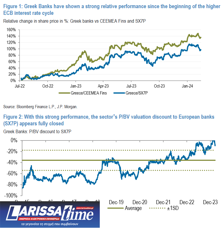 Φυσικά, θα μπορούσε κανείς να υποστηρίξει ότι οι ισχυρές θεμελιώδεις προοπτικές των ελληνικών τραπεζών με ευνοϊκό μακροοικονομικό υπόβαθρο, καθαρούς ισολογισμούς, τροχιά ανάπτυξης καλών δανείων και διαρθρωτικά θεμέλια των κερδών –συμπεριλαμβανομένης της υψηλής απόδοσης κόστους και της υψηλής ενοποίησης της αγοράς– μπορεί να συνεχίσουν να υποστηρίζουν τον κλάδο.