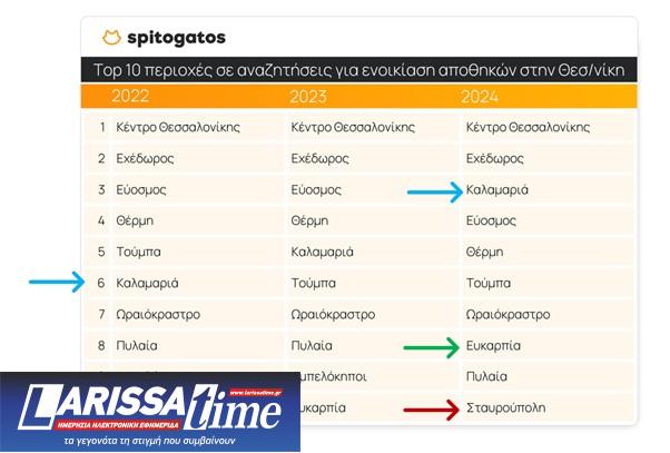 Οι αλλαγές του ενδιαφέροντος για την ενοικίαση αποθηκών είναι σημαντικές και στη συμπρωτεύουσα. Εκτός από το κέντρο της πόλης και την περιοχή του Εχεδώρου, σημαντική είναι η άνοδος των αναζητήσεων για την Καλαμαριά και την Ευκαρπία, ενώ το 2024 για πρώτη φορά εμφανίστηκε στη δεκάδα η Σταυρούπολη, ως άλλη μία περιοχή που προσελκύει το ενδιαφέρον για ανεύρεση φθηνότερων αποθηκών.