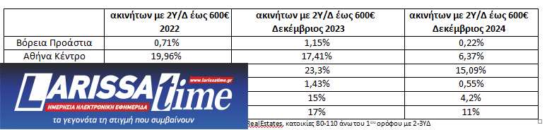 Σύμφωνα με τον παραπάνω πίνακα, καταγράφεται ραγδαία μείωση της διαθεσιμότητας κατοικιών (80-110τμ, άνω του 1ου ορόφου) με ζητούμενο μίσθωμα έως 600€, ακόμη και στις άλλοτε οικονομικές περιοχές.