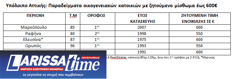 Μόλις το 11% των διαθέσιμων προς μίσθωση ακινήτων κατάλληλα για οικογένειες έχουν ζητούμενο μίσθωμα έως 600€ στις περιοχές του Υπολοίπου Αττικής.