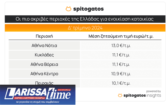 Νέα άνοδο των τιμών των ακινήτων καταγράφει ο Spitogatos για το τελευταίο τρίμηνο του 2024. Ειδικότερα, κατά το τελευταίο τρίμηνο του 2024, καταγράφεται αύξηση στις τιμές πώλησης και ενοικίασης κατοικιών σε ολόκληρη τη χώρα. Οι μέσες ζητούμενες τιμές πώλησης σημείωσαν άνοδο 7,9% σε σύγκριση με το 4ο τρίμηνο του 2023 και αύξηση 2,2% σε σχέση με το 3ο τρίμηνο του 2024. Αντίστοιχα, οι μέσες ζητούμενες τιμές ενοικίασης παρουσίασαν αύξηση 5,8% σε σύγκριση με το τέταρτο τρίμηνο του 2023, ενώ κινήθηκαν περίπου στα ίδια επίπεδα σε σχέση με το 3ο τρίμηνο του 2024.