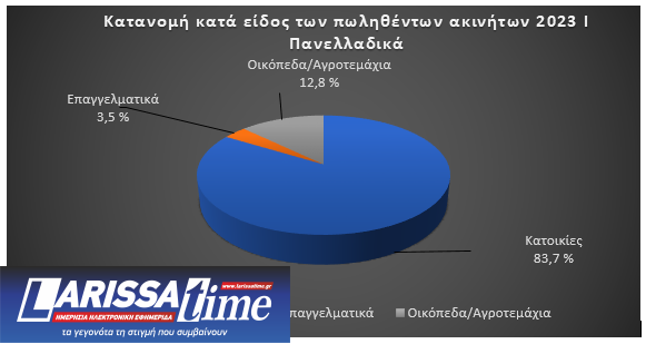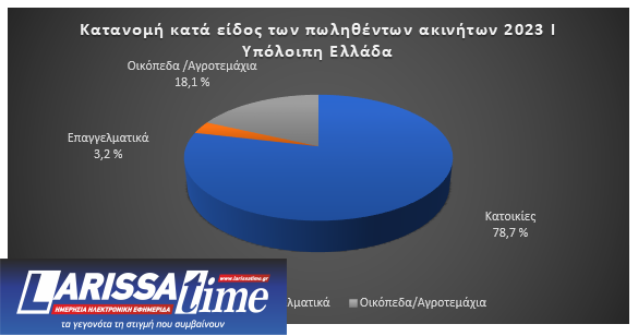 Βάσει της λεπτομερούς ανάλυσης των στοιχείων της RE/MAX Ελλάς για την κατανομή των πωλήσεων ακινήτων σε πανελλαδικό επίπεδο, το 83,7% του συνολικού αριθμού ακινήτων που πωλήθηκαν αντιστοιχούσαν σε κατοικίες (διαμερίσματα/μονοκατοικίες/μεζονέτες). Από την άλλη, τα οικόπεδα-αγροτεμάχια και τα επαγγελματικά ακίνητα αφορούσαν πολύ μικρότερο ποσοστό, της τάξης του 12,8% και 3,5% αντίστοιχα.