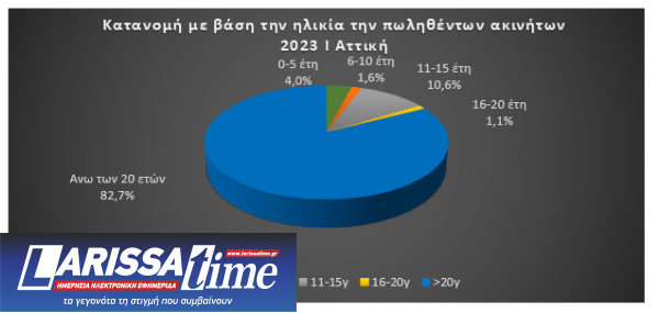 Στην Αττική, παρατηρείται ότι το 82,7% των πωληθέντων ακινήτων ανήκουν στην κατηγορία των παλαιών οικιστικών, ηλικίας άνω των 20 ετών. Αντίθετα, τα νεόδμητα και τα καινούργια ακίνητα, έως και πενταετίας, αποτελούν μόλις το 4% των συνολικών αγοραπωλησιών, δηλαδή 2 ποσοστιαίες μονάδες χαμηλότερα σε σχέση με το 2022.