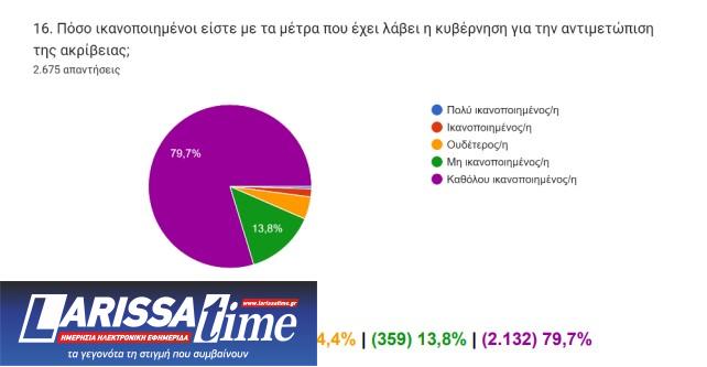 Για τα μέτρα που έχει λάβει η κυβέρνηση για την αντιμετώπιση της ακρίβειας, σχεδόν οκτώ στους δέκα απαντούν ότι δεν είναι «καθόλου ικανοποιημένοι» και «μη ικανοποιημένοι» ένα 13,8%.