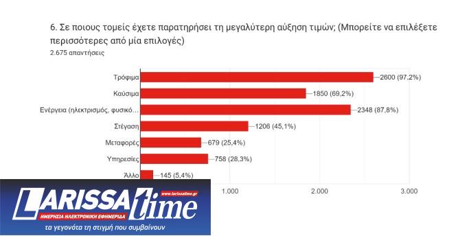 Σύμφωνα με τα αποτελέσματα της έρευνας, το μεγαλύτερο πρόβλημα για τα νοικοκυριά σε σχέση με τις τιμές παραμένουν τα τρόφιμα καθώς εκεί γίνονται πιο αισθητές.