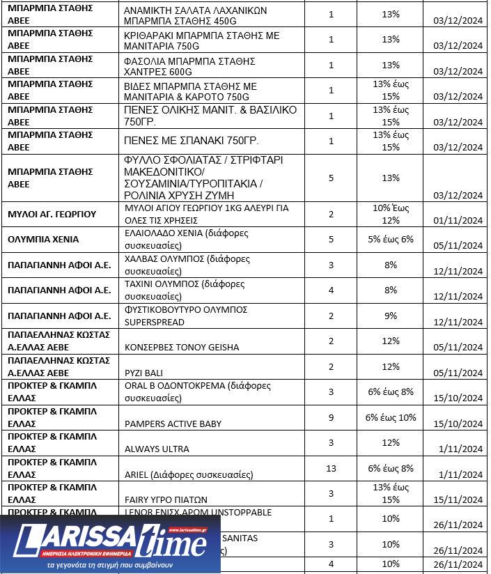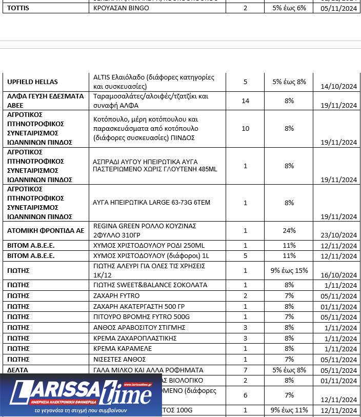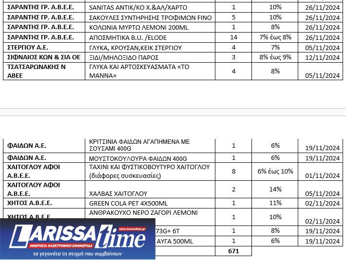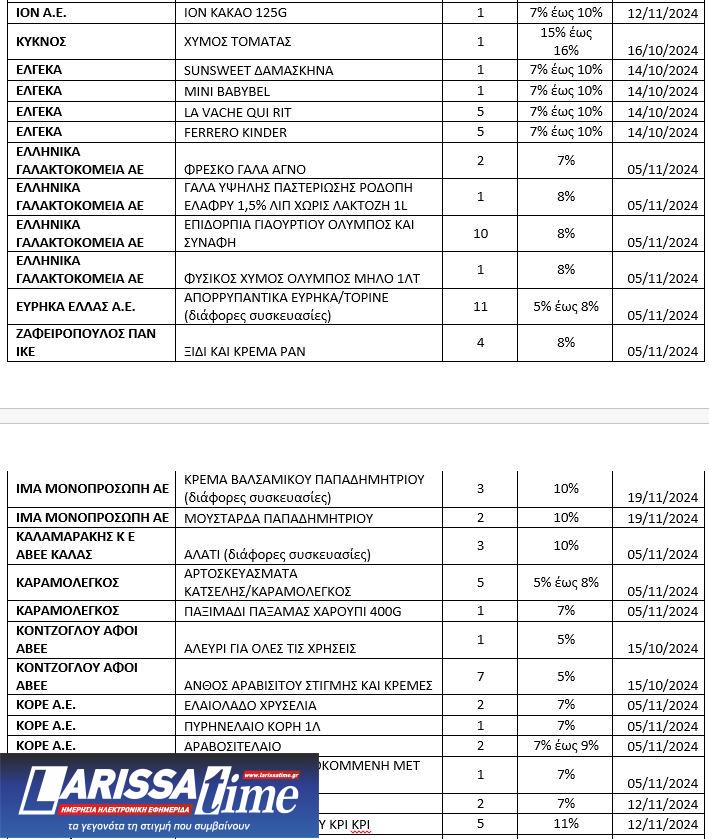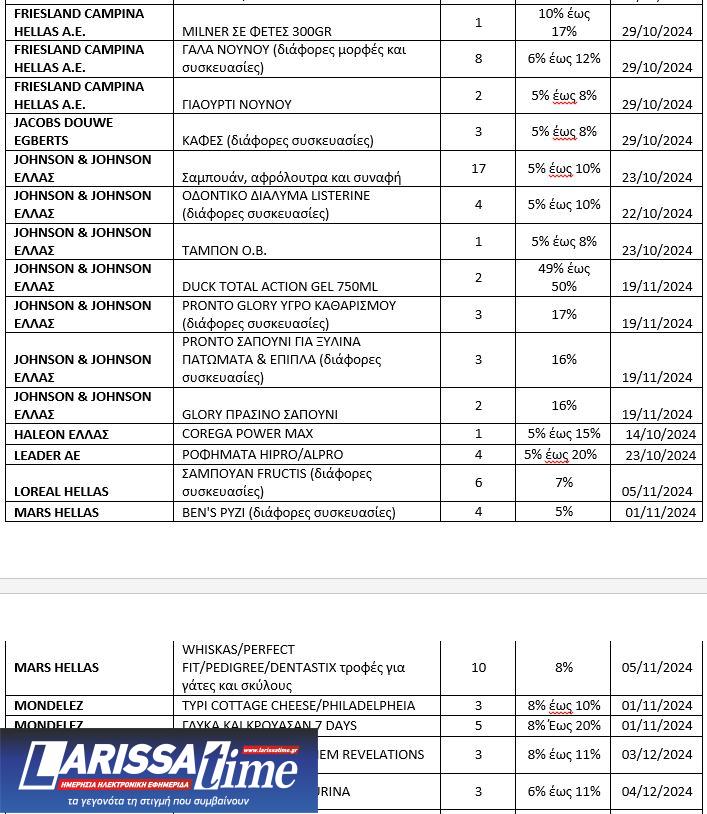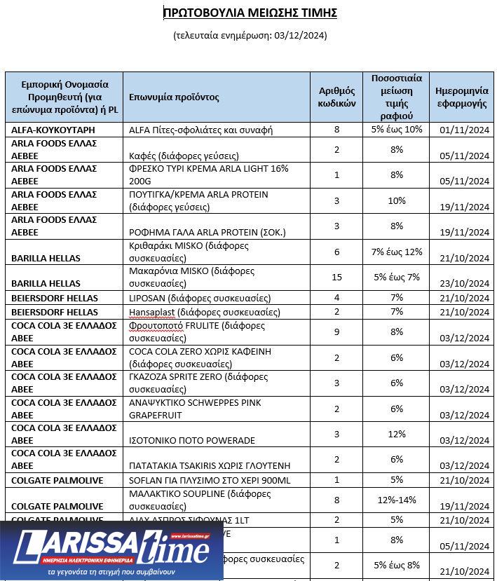 Σημειώνεται ότι στη νέα λίστα, συμπεριλαμβάνεται η ημερομηνία έναρξης εφαρμογής της μειωμένης τιμής, διευκολύνοντας έτσι τους καταναλωτές στις επιλογές τους.