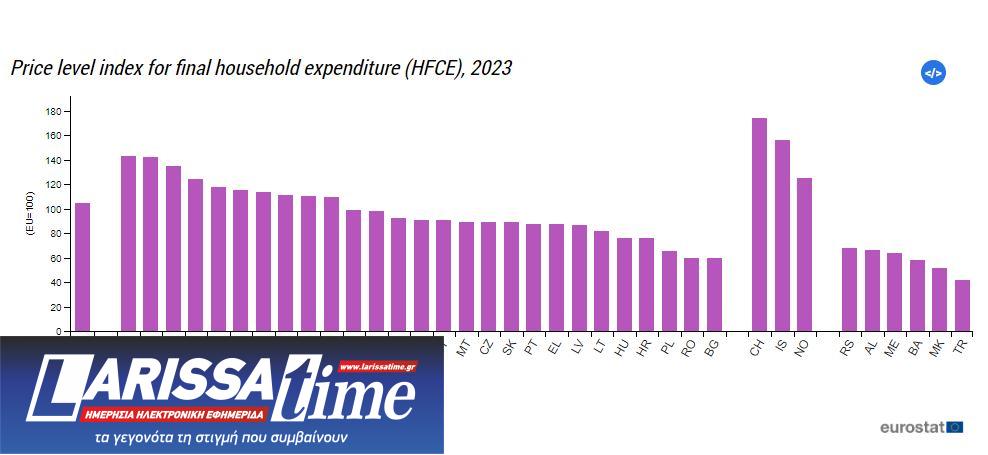 H ακριβότερη χώρα για τα γαλακτοκομικά προϊόντα (γάλα, τυρί και αυγά) το έτος 2023 αναδείχθηκε η Ελλάδα. Σύμφωνα με τα στοιχεία για το επίπεδο τιμών σε βασικά αγαθά και υπηρεσίες που δημοσίευσε η Eurostat στη χώρα μας παρατηρούνται οι υψηλότερες τιμές στην κατηγορία των γαλακτοκομικών προϊόντων κατά 38% σε σχέση με τον μέσο κοινοτικό όρο και παρά τις προσπάθειες της κυβέρνησης να υποχωρήσει η ακρίβεια με στοχευμένα μέτρα.