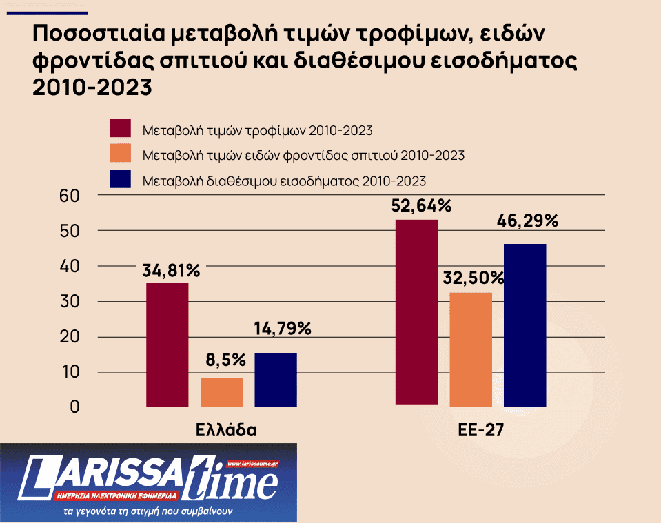 Ωστόσο, «Οι σαφώς μικρότερες αυξήσεις στην Ελλάδα επηρεάζουν πολύ περισσότερο τα ελληνικά νοικοκυριά σε σχέση με την Ευρωπαϊκή Ένωση λόγω του πολύ μικρότερου ρυθμού αύξησης εισοδημάτων μέχρι το 2021» ενώ «Την περίοδο 2021-2023 τα εισοδήματα ακολουθούν την τάση του Ευρωπαϊκού μέσου όρου, αλλά υπολείπονται σημαντικά σε βάθος χρόνου και απαιτούνται γρηγορότεροι ρυθμοί σύγκλησης». Ούτε λίγο ούτε πολύ οι αυξήσεις των μισθών στην Ελλάδα υπολείπονται των αυξήσεων στις τιμές των προϊόντων και δη των τροφίμων, κάτι που αποτελεί ένα ασφυκτικό πλαίσιο για τους καταναλωτές στη χώρα μας.