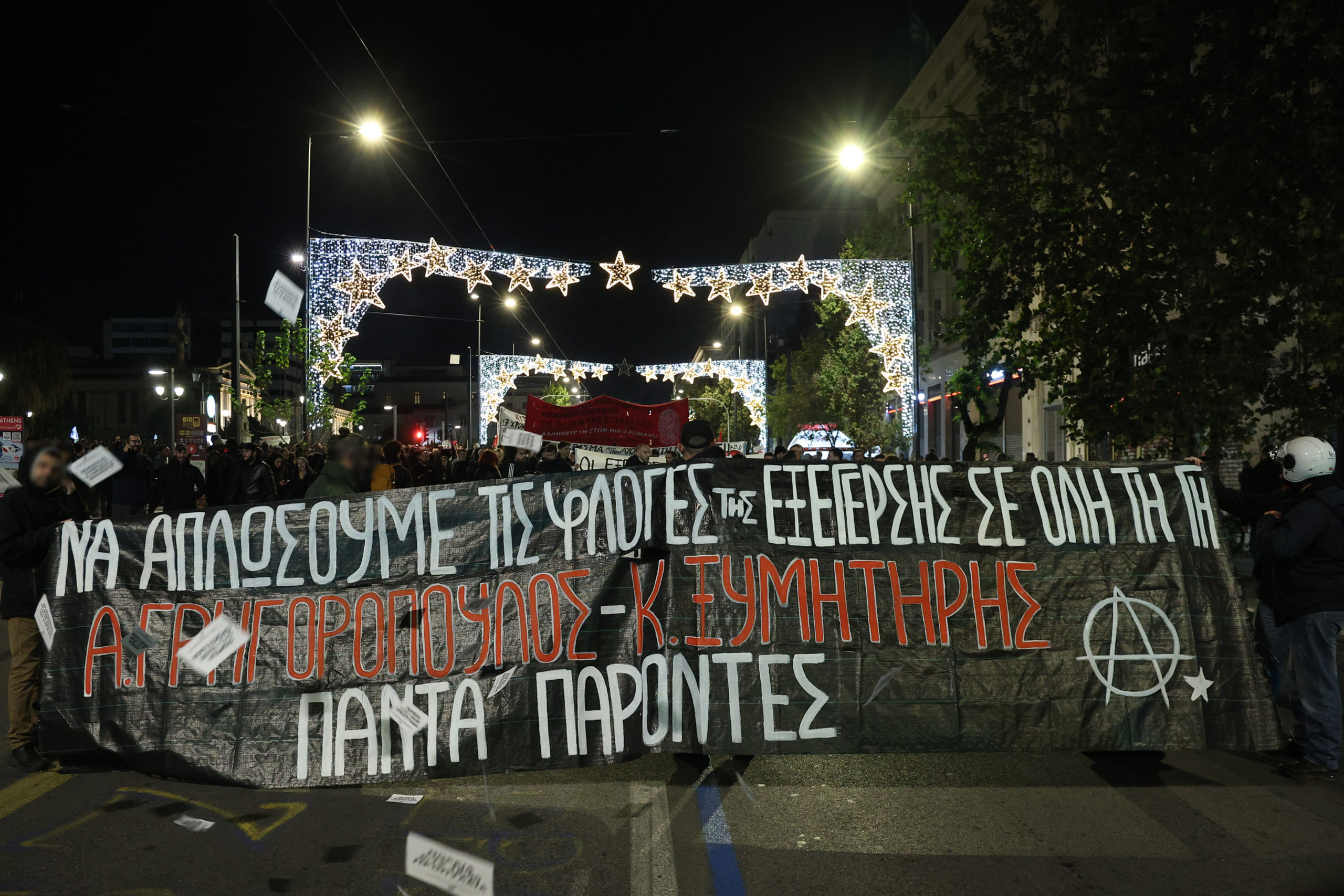 Με κεντρικό σύνθημα «εμείς θα πούμε την τελευταία λέξη αυτές οι μέρες είναι του Αλέξη» οργανώσεις και συλλογικότητες της αριστεράς και του αντιεξουσιαστικού χώρου συγκεντρώθηκαν αρχικά στα Προπύλαια και στη συνέχεια κατευθύνθηκαν μέχρι το Σύνταγμα.