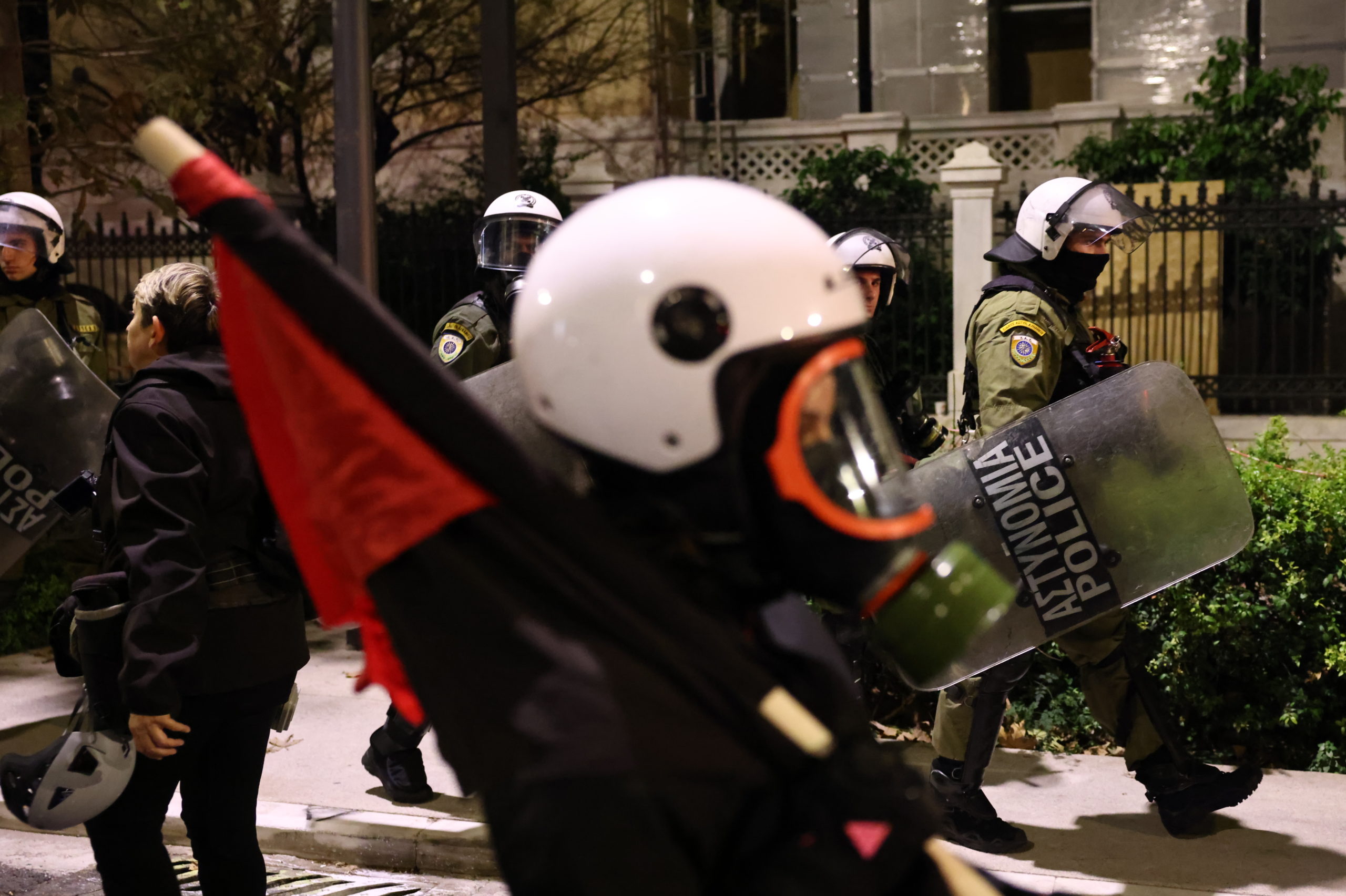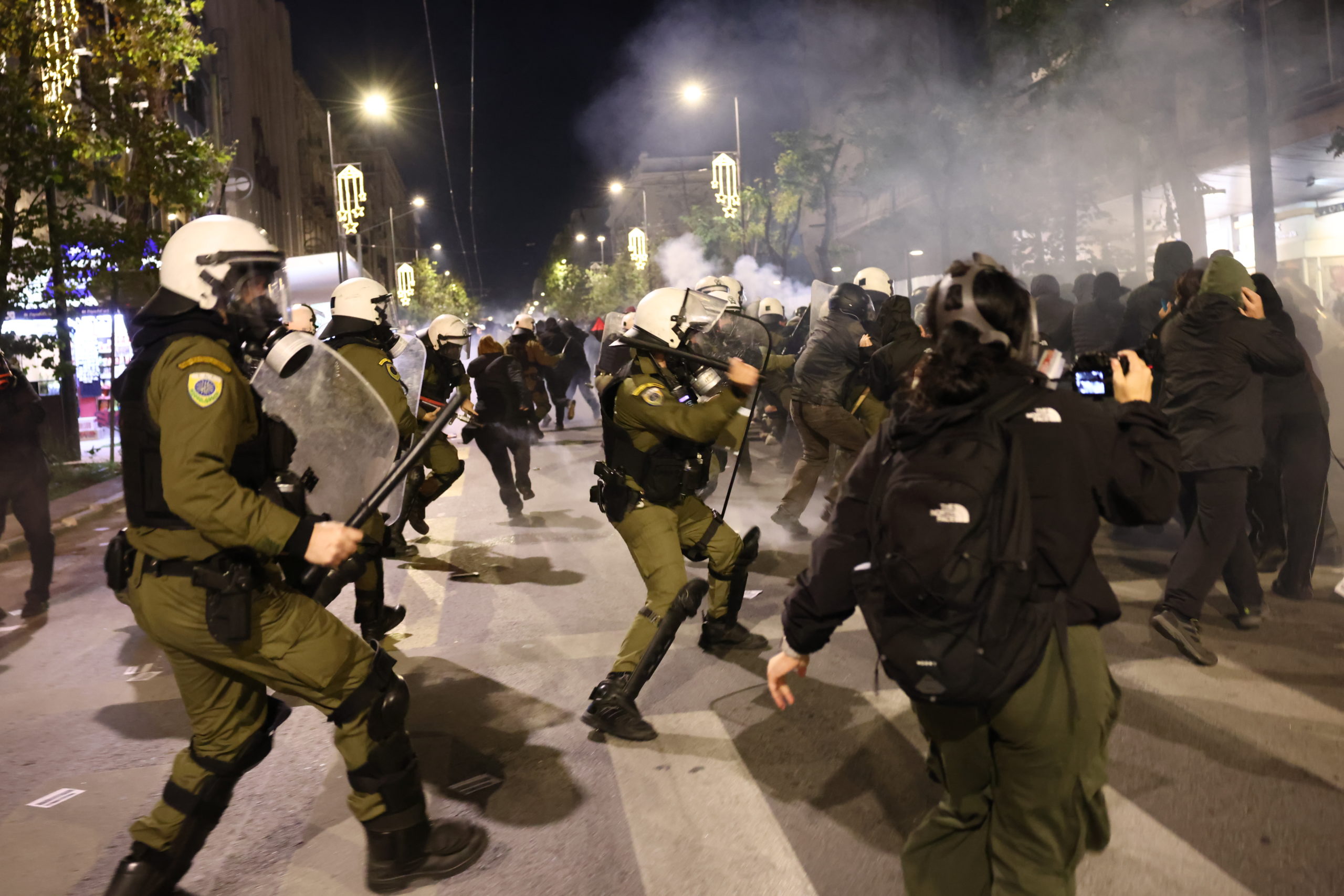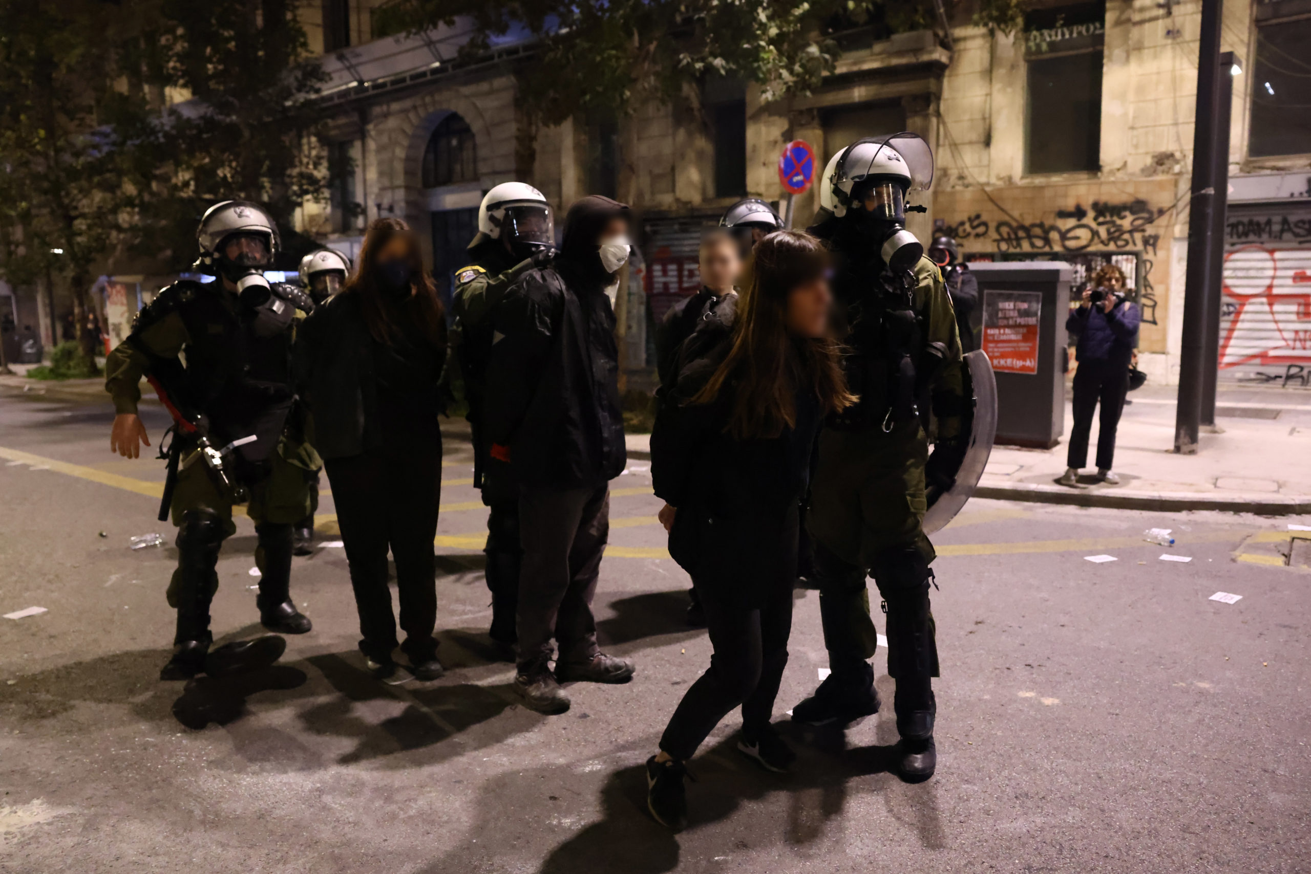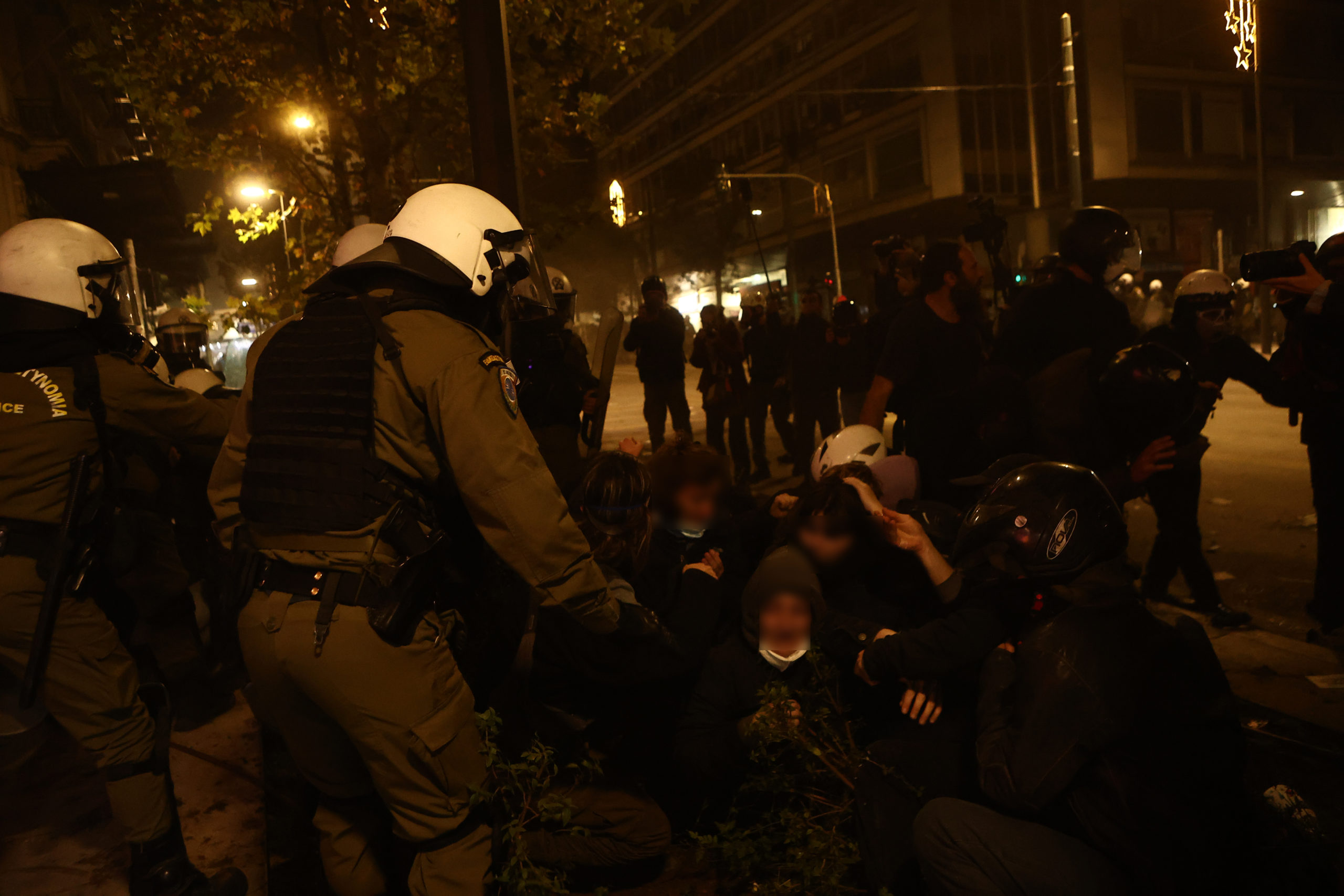 Λίγο προτού ολοκληρωθεί η διαδήλωση, η κεφαλή της πορείας προσπάθησε να στρίψει στην οδό Μπενάκη για να κατευθυνθεί στα Εξάρχεια, όπου έχει προγραμματιστεί συγκέντρωση μπροστά από το μνημείο του Αλέξανδρου Γρηγορόπουλου, στη συμβολή των οδών Τζαβέλλα και Μεσολογγίου.