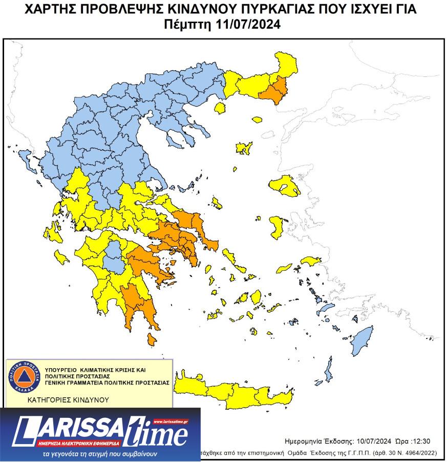 Συγκεκριμένα, πολύ υψηλός κίνδυνος πυρκαγιάς υπάρχει στις περιφέρειες Αττικής (συμπεριλαμβανομένης της νήσου Κυθήρων), Πελοποννήσου (ΠΕ Κορινθίας, ΠΕ Αργολίδας, ΠΕ Λακωνίας), Στερεάς Ελλάδας (ΠΕ Βοιωτίας, ΠΕ Εύβοιας) και Ανατολικής Μακεδονίας & Θράκης (ΠΕ Έβρου).