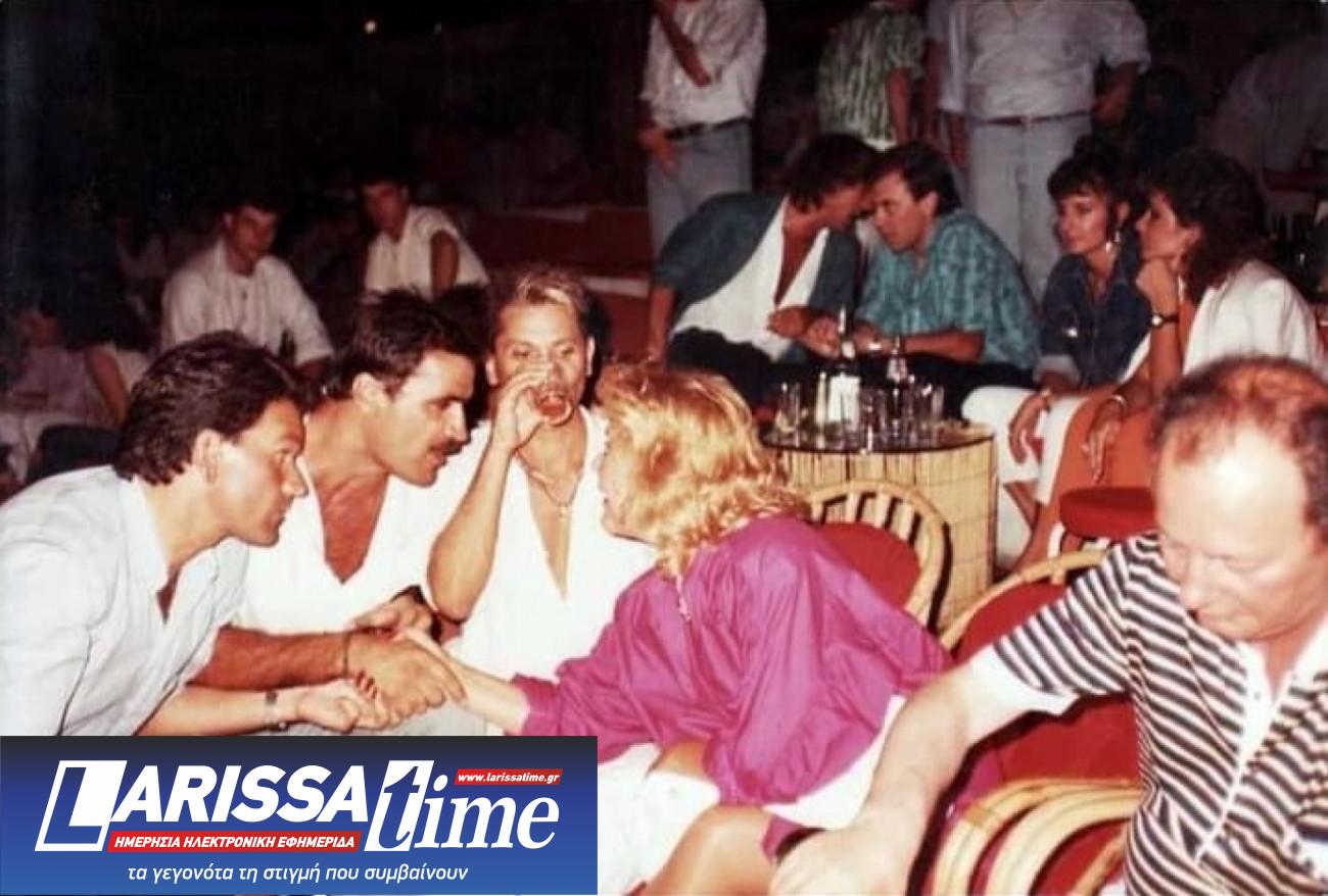 «Στη φωτογραφία φαίνεται η κουμπάρα μου και νονά της πρώτης μου συζύγου, η κορυφαία των κορυφαίων, η Μαρινέλλα, ο Δημήτρης Σουλελές, ο επιχειρηματίας και ιδιοκτήτης του “Ειρηνικού”, του κορυφαίου κέντρου διασκεδάσεως της εποχής, και αριστερά εγώ».