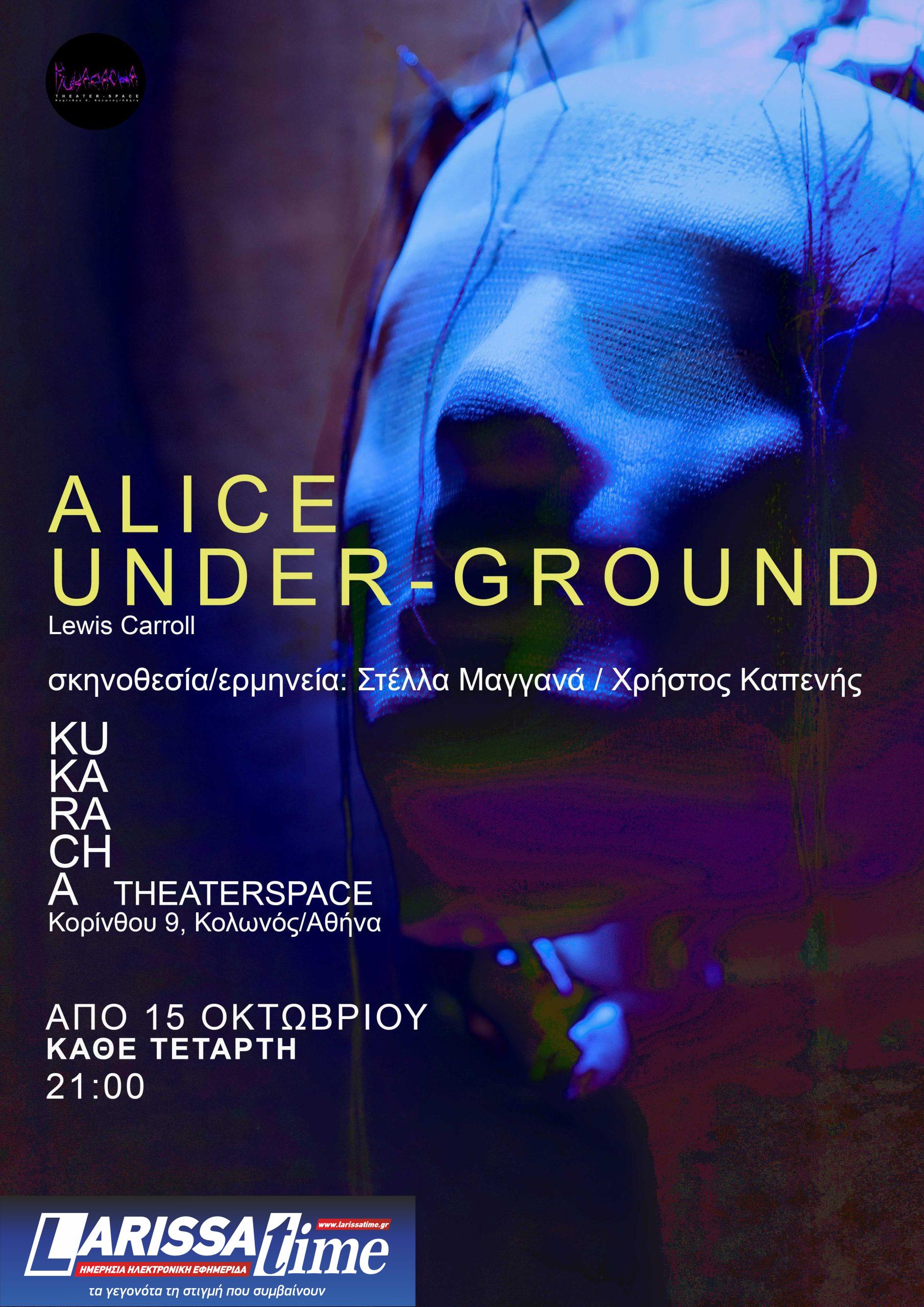 Από τις 15 Οκτωβρίου και κάθε Τετάρτη στις 21:00, η θεατρική παράσταση «Alice Under-ground» παρουσιάζεται στον ανεξάρτητο χώρο παραστατικών τεχνών Kukaracha Theaterspace στον Κολωνό, προτείνοντας μια διαφορετική, πειραματική προσέγγιση στο κλασικό έργο του Lewis Carroll.