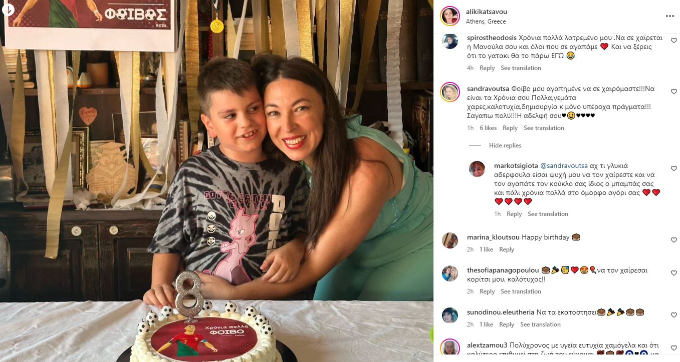 Η Αλίκη Κατσαβού ανάρτησε στον προσωπικό της λογαριασμό στο Instagram μια φωτογραφία του Φοίβου, ο οποίος γιορτάζει τα όγδοά του γενέθλια σβήνοντας τα κεράκια της τούρτας και έγραψε: