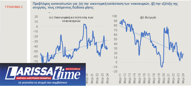 Λιγότερο απαισιόδοξοι εμφανίζονται οι καταναλωτές σε ό,τι αφορά την οικονομική τους κατάσταση και την ανεργία σε μακροχρόνιο επίπεδο.
