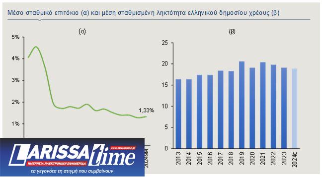 Η αποκλιμάκωση του λόγου χρέους προς ΑΕΠ, από το 2019 έως και το 2024, προήλθε πρωτίστως από τον παρονομαστή, δηλαδή από το ονομαστικό ΑΕΠ. Συγκεκριμένα, από τις 25,7 μονάδες της πτώσης του χρέους της Γενικής Κυβέρνησης ως ποσοστό του ΑΕΠ στο διάστημα αυτό, οι 17,5 μπορούν να αποδοθούν στον πραγματικό ρυθμό οικονομικής μεγέθυνσης και οι 27,5 στην άνοδο του επιπέδου τιμών, με την πτώση να αντισταθμίζεται μερικώς από τις πληρωμές τόκων (περίπου 15 ποσοστιαίες μονάδες σωρευτικά) αλλά και τα πρωτογενή ελλείμματα κατά τη διάρκεια της πανδημίας.
