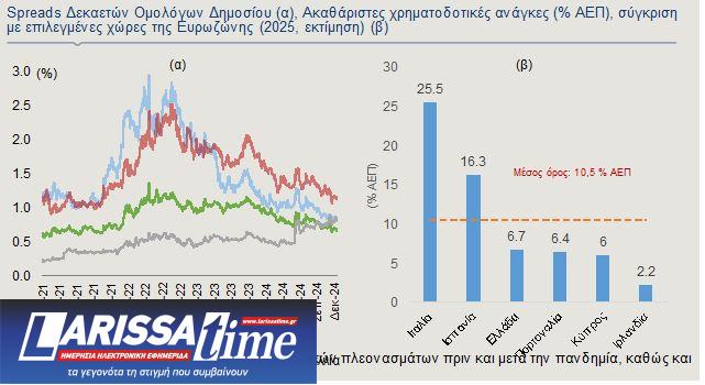 Τρίτον, όσον αφορά στο 2025, οι ακαθάριστες χρηματοδοτικές ανάγκες της Ελλάδας εκτιμώνται περίπου στο 6,7% του ΑΕΠ (Γράφημα 2β), γεγονός που οφείλεται, μεταξύ άλλων, στην πρόωρη αποπληρωμή δανείων του Greek Loan Facility (GLF) που πραγματοποιήθηκε τον Δεκέμβριο του 2024, ύψους Ευρώ 7,9 δισ.