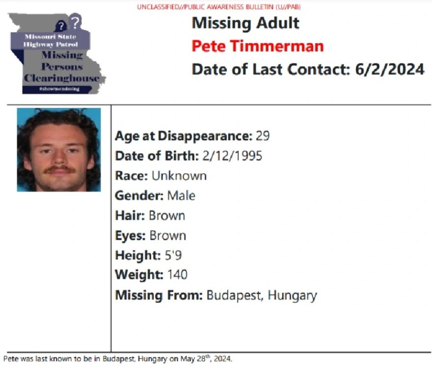 Ο άντρας είχε δηλωθεί αγνοούμενος τον Μάιο , αφού εθεάθη για τελευταία φορά στην ουγγρική πρωτεύουσα Βουδαπέστη.