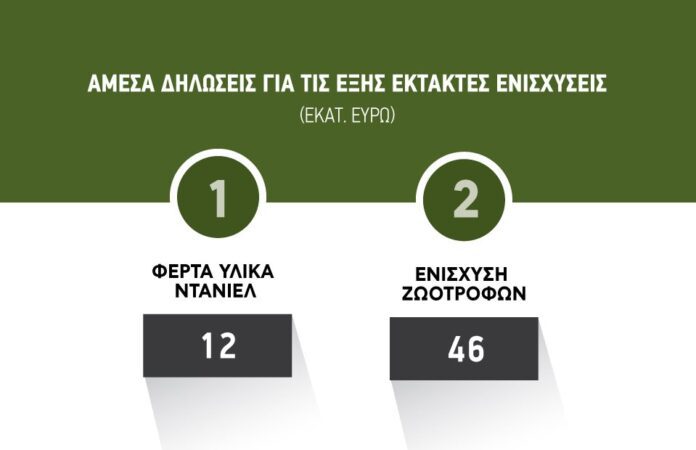Ενημερώνουμε τους εν δυνάμει δικαιούχους ότι για να ολοκληρωθεί η διαδικασία υπολογισμού της ενίσχυσης των ενισχύσεων  de minimis σύμφωνα με τις ΚΥΑ 208989/2025 (ΦΕΚ 4202/1-08-2025) (Ενίσχυση Ζωοτροφών ) ή και 208982/2025 (ΦΕΚ 4203/01-08-2025) (Φερτά υλικά λόγω Daniel), θα πρέπει να υποβάλλουν άμεσα τη σχετική δήλωση μέσω της εφαρμογής https://eae2024.opekepe.gov.gr/eae2024 με κωδικούς taxis net.