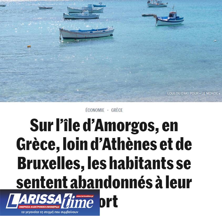 «Στο νησί της Αμοργού, στην Ελλάδα, μακριά από την Αθήνα και τις Βρυξέλλες, οι κάτοικοι αισθάνονται εγκαταλελειμμένοι στη μοίρα τους» είναι ο τίτλος άρθρου της γαλλικής εφημερίδας Le Monde, η οποία ασκεί σκληρή κριτική στη χώρα για την εγκατάλειψη των νησιών της.
