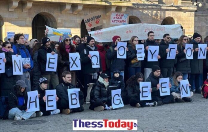 Οι διαδηλωτές, με δυναμική παρουσία, βροντοφώναξαν συνθήματα, τονίζοντας πως θα στηρίζουν τους συγγενείς των θυμάτων μέχρι να αποκαλυφθεί η πλήρης αλήθεια για την τραγωδία στα Τέμπη.