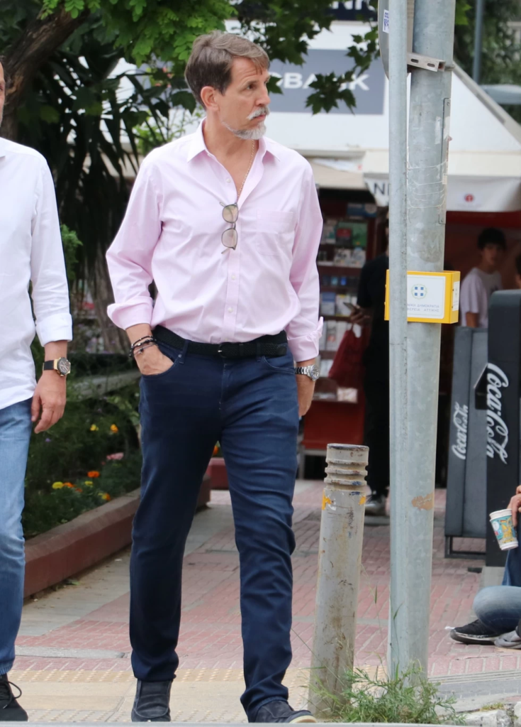 Μάλιστα ο Παύλος εθεάθη με casual άνετο στυλ, χωρίς σακάκι και γραβάτα. Άνετος περπατούσε στον δρόμο με cool στυλ. Ο σύζυγος της Μαρί Σαντάλ διάλεξε για το look του ένα μπλε σκούρο τζιν παντελόνι με ροζ πουκάμισο και άνετα loafers.